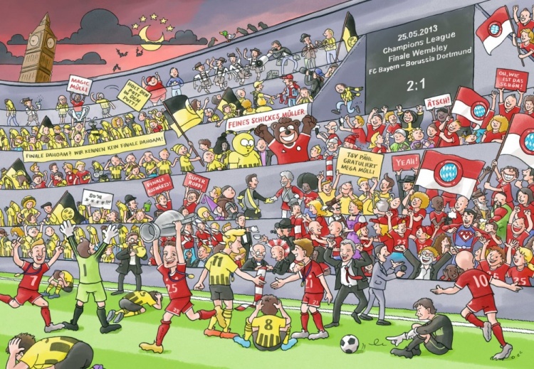 多年来穆勒在拜仁与罗本、里贝里共事,这两位边路球星也影响了他,他们与穆勒在2013年一起赢得了欧冠,因此穆勒在新书中特地给“罗贝里”安排了一整页,上面描绘了他们在2009年8月29日3-0战胜沃尔夫斯堡的比赛中首次共同出场的场景。